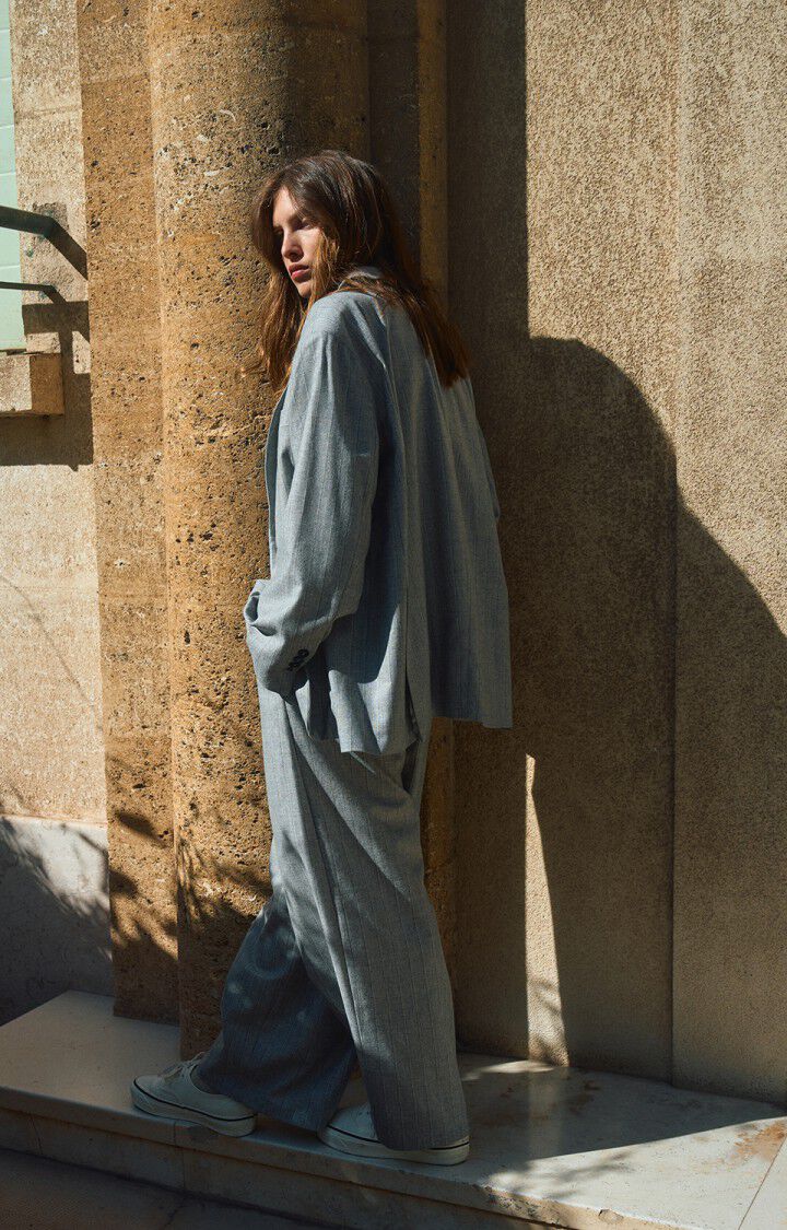 De Dirow-blazer voor dames is gemaakt van Italiaanse koude wol, die bekend staat om zijn thermoregulerende eigenschappen. Koude wol voelt koel aan in de zomer en houdt de warmte vast in de winter. Met zijn retro en eigentijdse stijl kan hij worden gecombineerd met een broek uit dezelfde Dirow-collectie voor een complete workwear-look, of met een spijkerbroek voor een meer casual look.