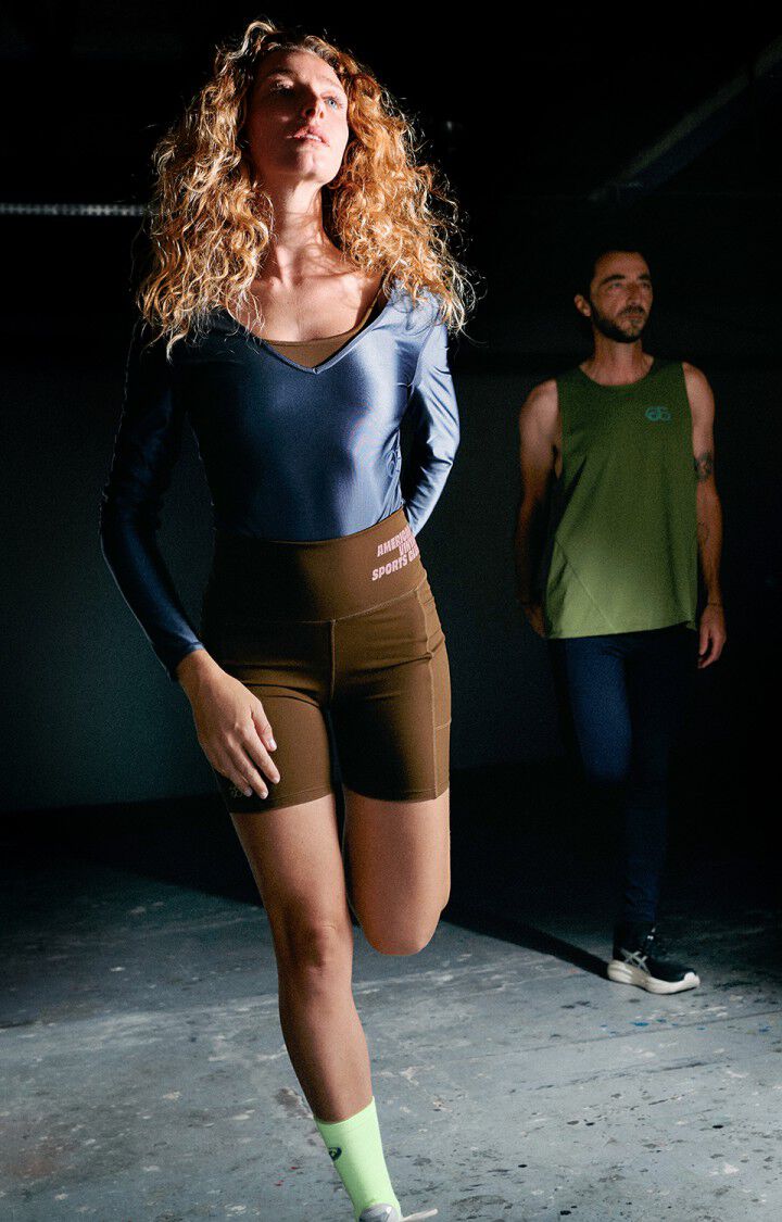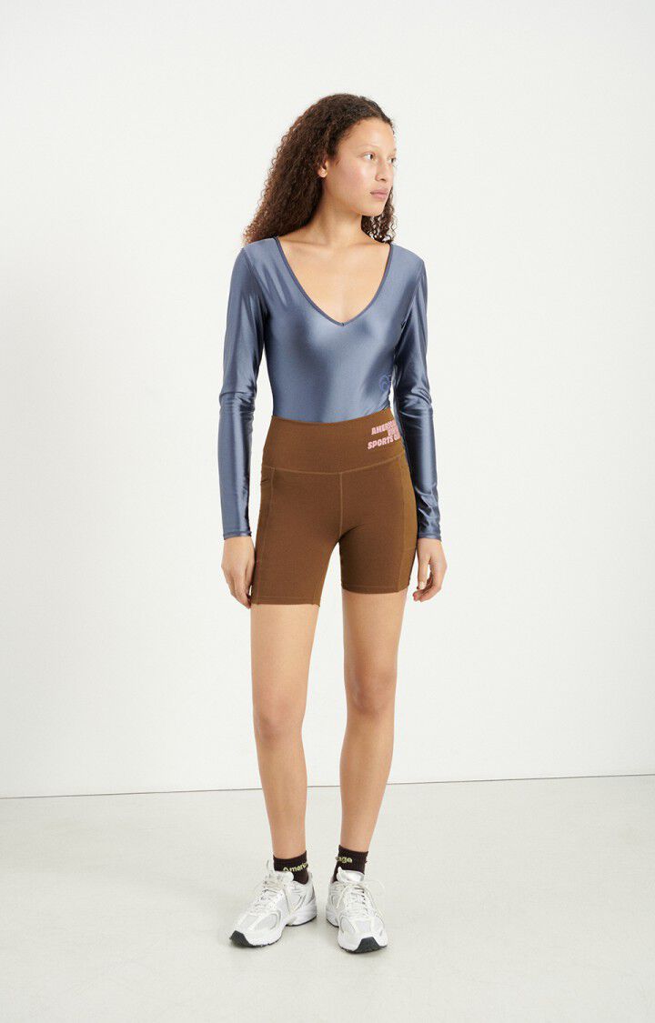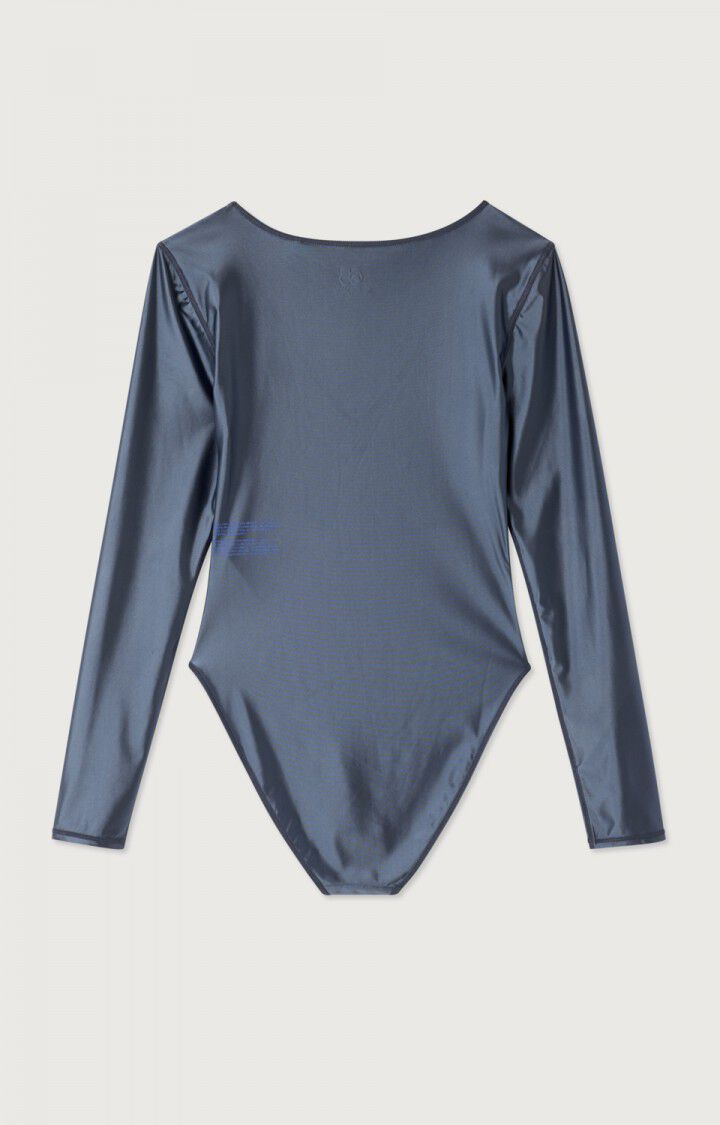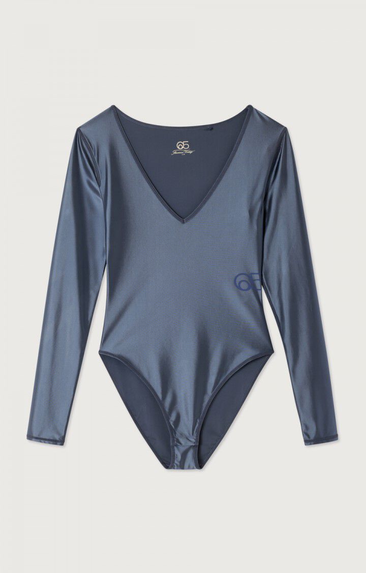 De Goffy body met V-hals betovert met zijn delicate, vrouwelijke uitstraling, geïnspireerd op de wereld van yoga en pilates. De ultraretro, vintage stijl komt tot uiting in de soepel vallende, iriserende stof. Draag hem met een gebreid vest en een losse joggingbroek voor een comfortabele maar elegante look.