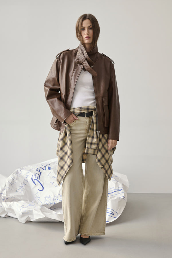 High-waist jeansbroek in soepele lichtbruine denim. De broek heeft een fitting die mooi wijd rond de benen valt. Voor een complete set combineer je Nielle met het bijpassende Azul jeanshemd.