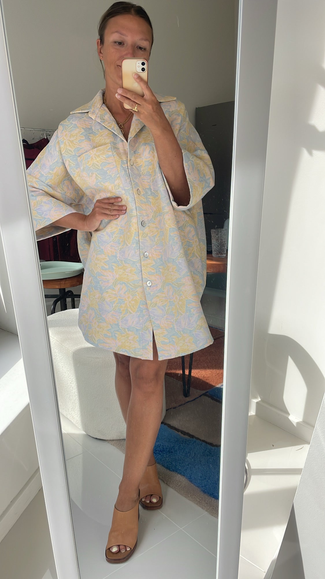 Deze oversized shirt/dress is een eyecatcher omwille van de mooie jacquard stof. Een specialer item dat je kan down-en updressen!