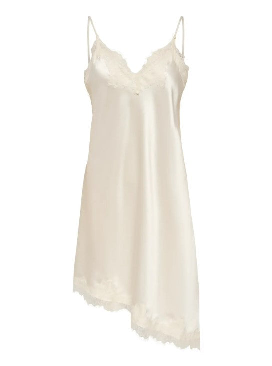 Fijn zwart satijnen kleedje met asymmetrische zoom en verstelbare spaghettibandjes. De kanten details zorgen voor een extra vrouwelijke touch. Draag Bella als kleedje of draag deze als tuniek over een losse denim.