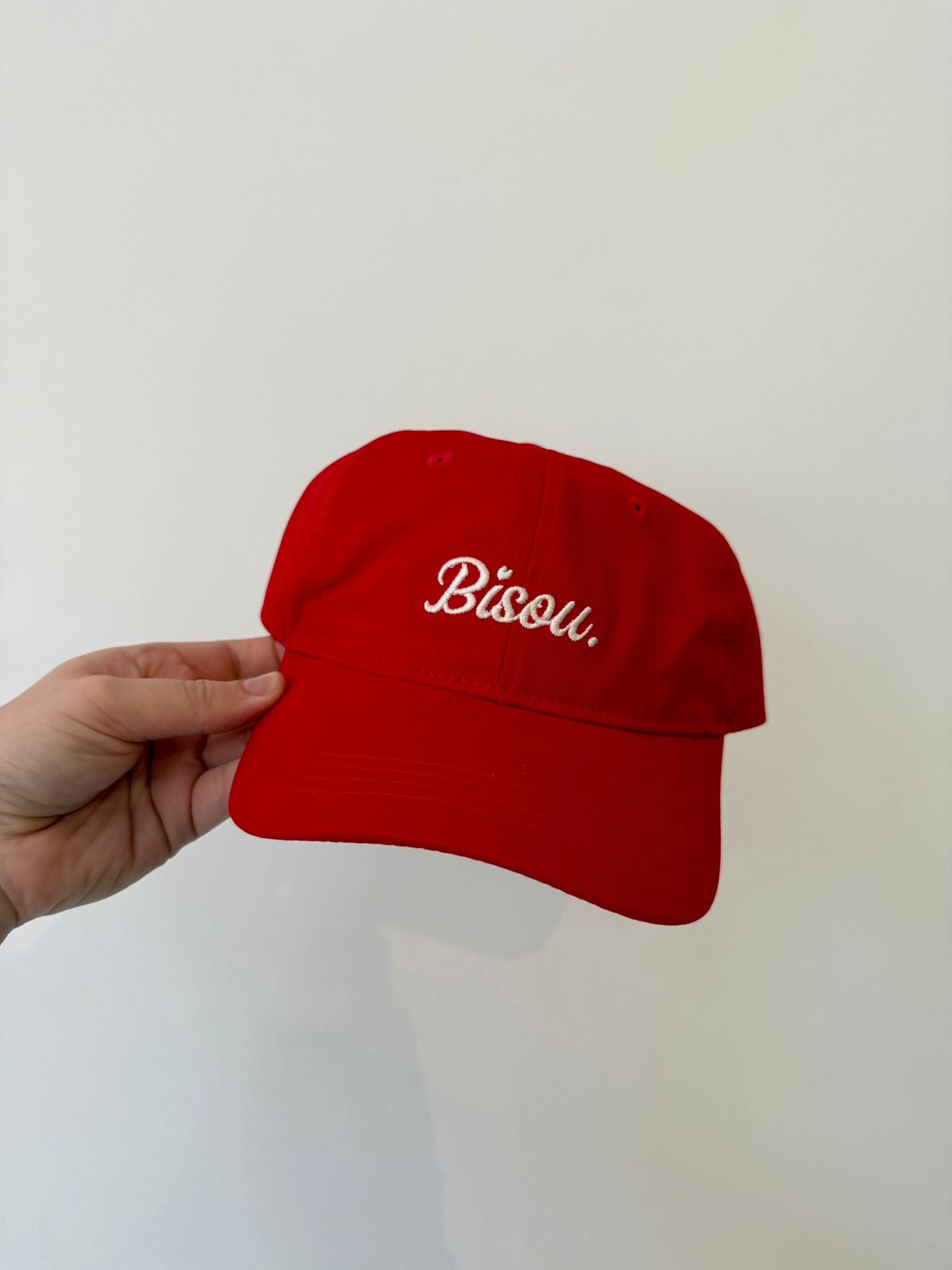 Geef jouw outfit een stoere touch met de Denise pet! Denise is een stijlvolle rode katoenen pet met het geborduurde opschrift ‘bisou.’ De ademende stof en verstelbare velcrosluiting zorgen voor een comfortabele pasvorm. Een speels en modern accessoire dat elke casual outfit compleet maakt.
