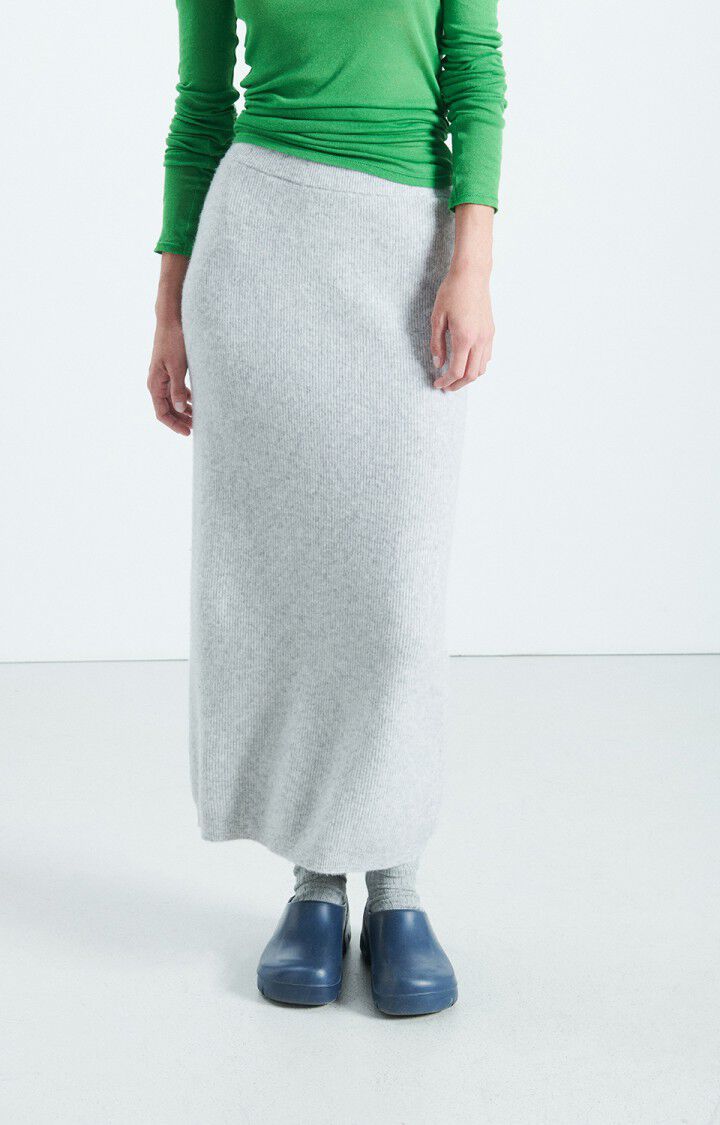 Zachte aansluitede rok in breisel, een comfortabel en gezellig item dat je zowel casual als wat meer opgekleed kan dragen. Ook leuk als set met de bijpassende trui te dragen.