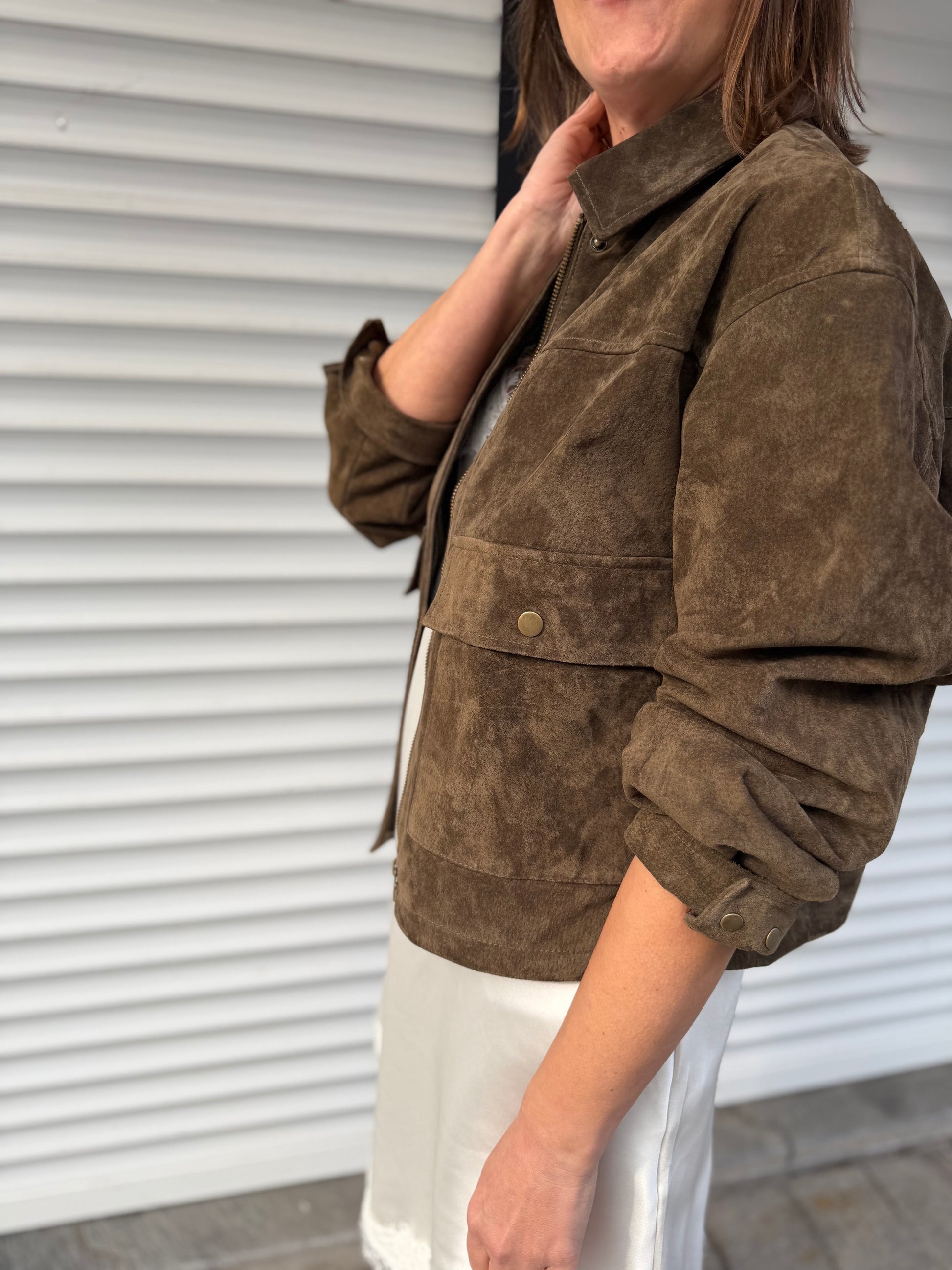 Suède jasje Kaia | Kaki - donkerbruin