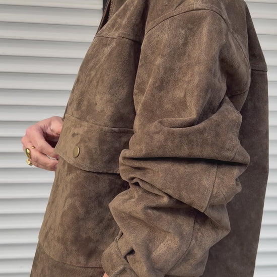 Must-have alert! Deze echte suède boxy jacket is het ideale jasje voor het Belgische tussenseizoen! Mooi afgewerkt met een blinde sluiting en opgestikte zakken. Kaia heeft een boxy fitting, komt dus ietwat korter en wijder, draag je vlot met je favoriete bleke denim, witte tee en ballerina voor de perfecte wardrobe staple look.